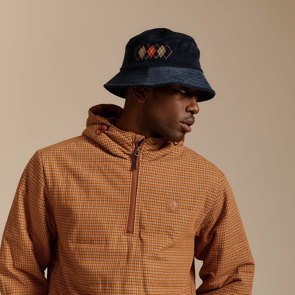 Voici le Chapeau bob Pliable en Velours Côtelé Gramercy bleu marine délavé de chez BRIXTON. Ce chapeau bob en velours côtelé est entièrement fait de coton. Non doublé et pliable, ce chapeau est orné d'un motif en losanges et d'un insigne Brixton sur le côté. Idéal pour se maintenir au chaud tout l'automne.