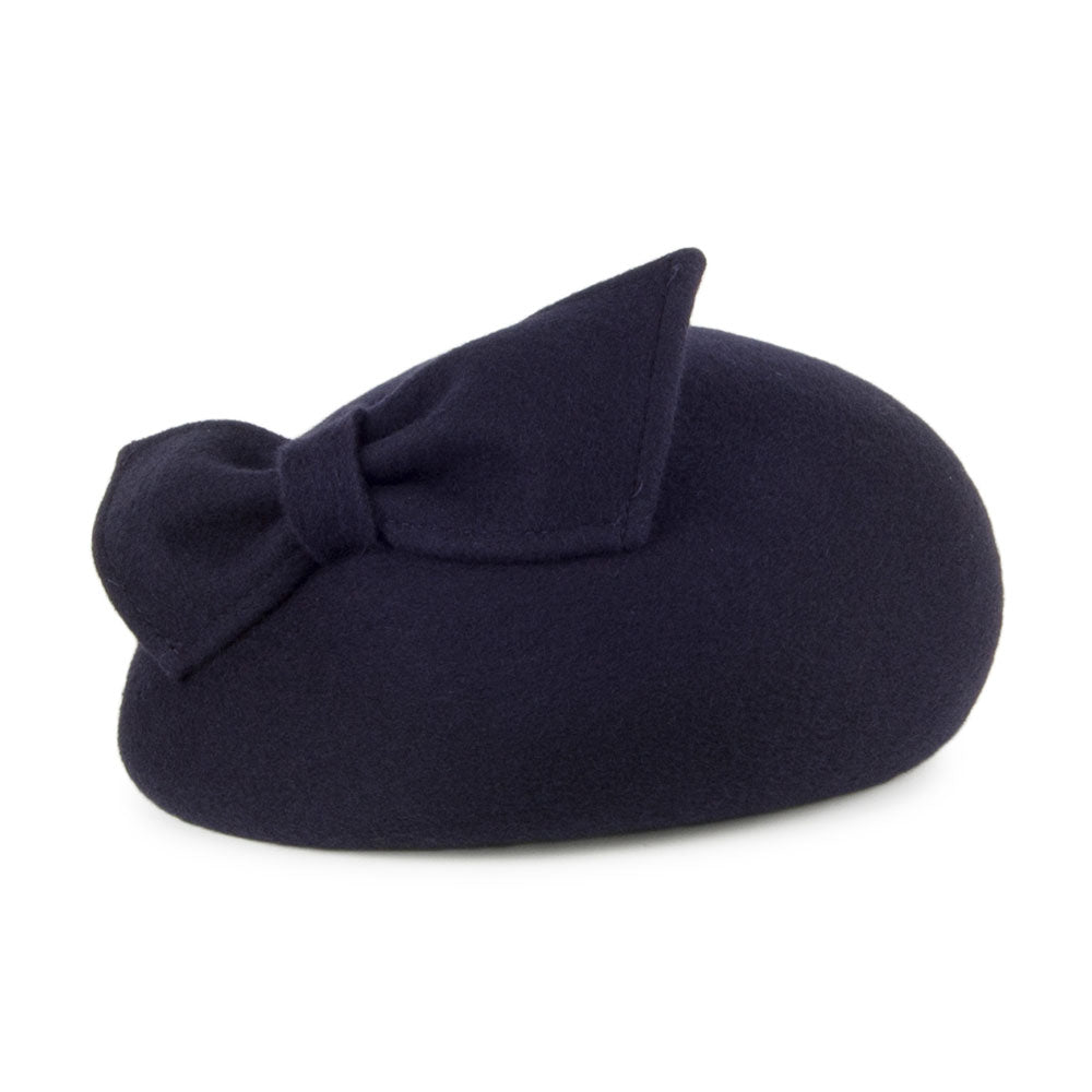 Le Chapeau Calot avec Nœud Kate bleu marine WHITELEY est fabriqué en Angleterre.