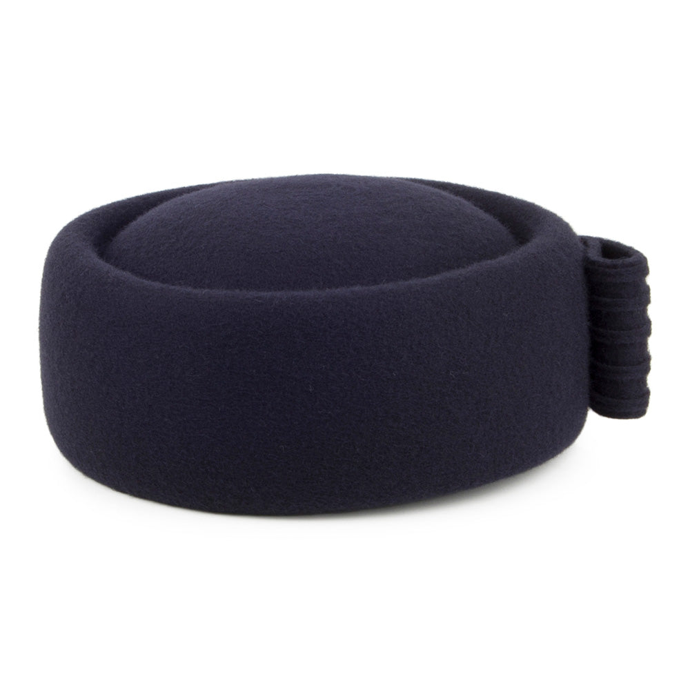 Le Chapeau Calot en Laine Jackie O Loop Bow bleu marine WHITELEY est fabriqué en Angleterre.
