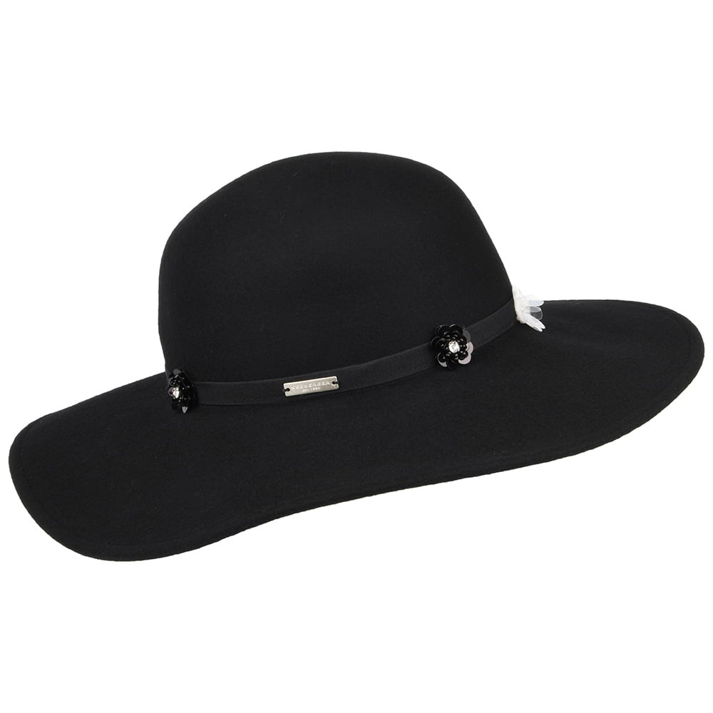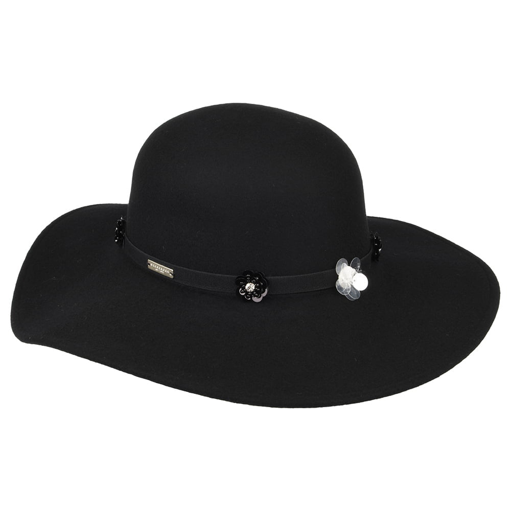 Chapeau Capeline à Fleur en Laine Feutrée noir SEEBERGER