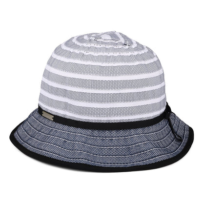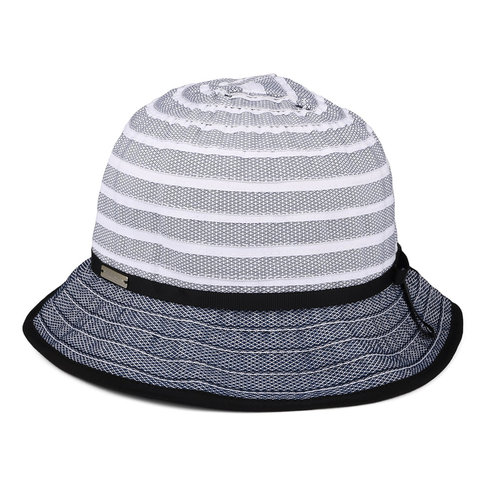 Voici le chapeau Cloche Ruban bleu de chez SEEBERGER. Ce chapeau, confectionné en entièrement en polyester, est non doublé. Le chapeau comporte un bandeau intérieur élastique, il est orné d'un insigne Seeberger cousu sur le côté droit et d'un nœud sur le côté gauche. Ce chapeau est idéal pour les vacances d'été car il est pliable et enroulable et présente un bord de 6,5cm qui offre une certaine protection solaire.