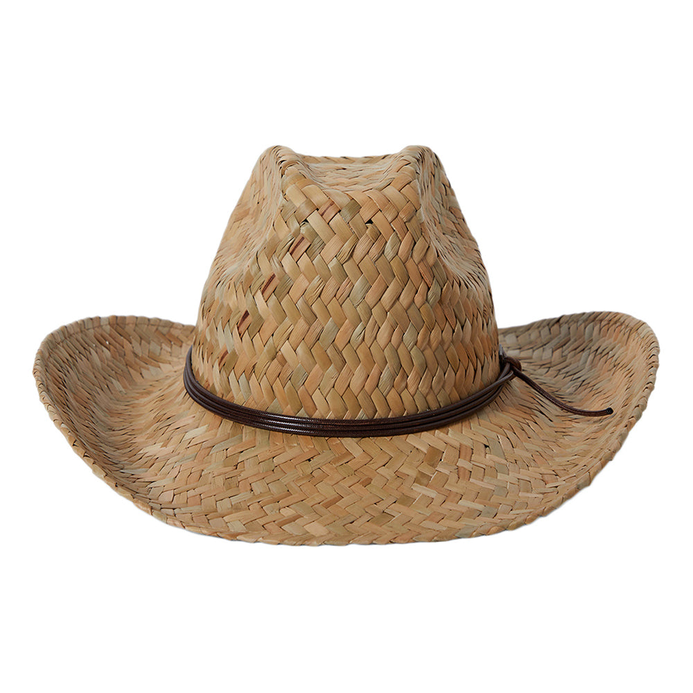 Voici le chapeau de Cowboy en Paille Houston II de chez BRIXTON couleur beige sable. Ce chapeau non doublé, fait entièrement en paille naturelle, est idéal pour la saison chaude. Le chapeau présente un bord très large de 11m pour offrir une bonne protection solaire. Le chapeau est orné d'une cordelette tressée et d'un insigne Brixton cousu sur le côté et il s'ajuste confortablement à plusieurs tailles grace à un bandeau intérieur élastique.