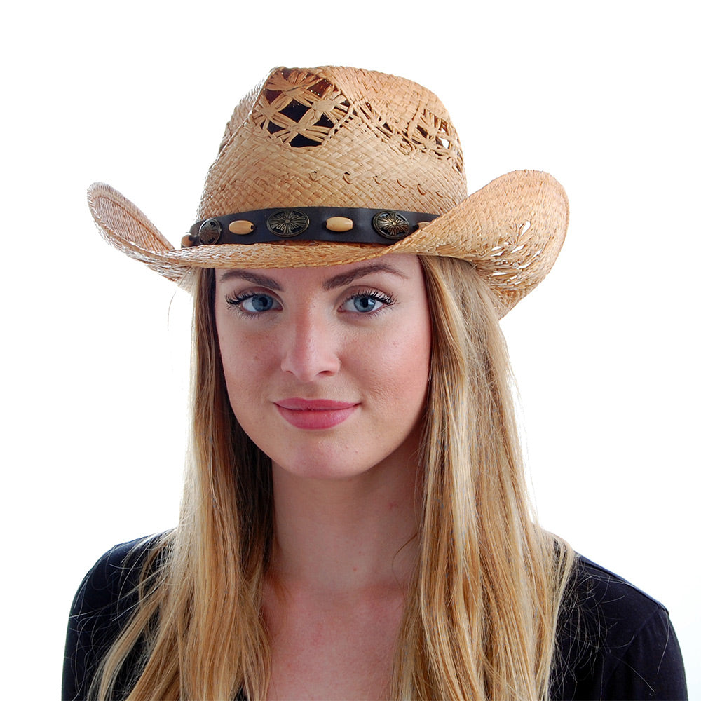 Chapeau de Cowboy en Raphia Annie Oakley SUR LA TETE - VENTE EN GROS