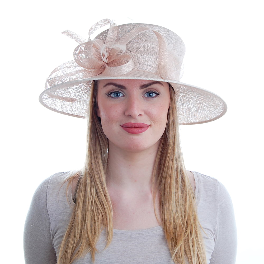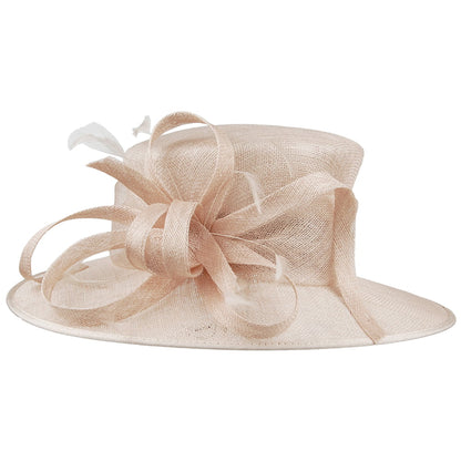 Voici le chapeau de mariage Juliet rose clair de chez Failsworth. Entièrement conçu en paille, ce superbe chapeau est orné d'un nœud et de plumes sur le côté. Son bord large présente un rebord en gros-grain. Un superbe chapeau pour un look élégant en toute occasion !
