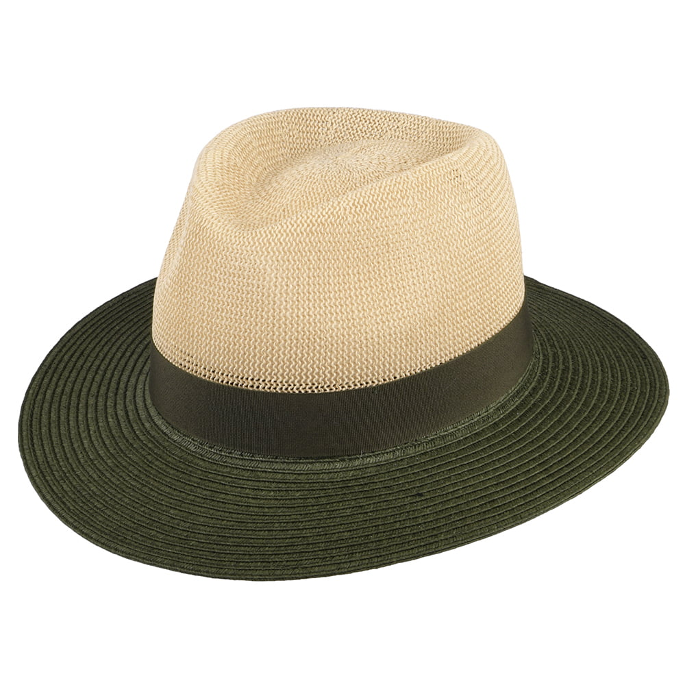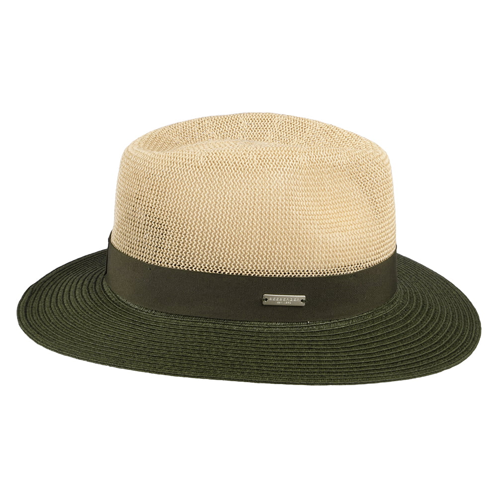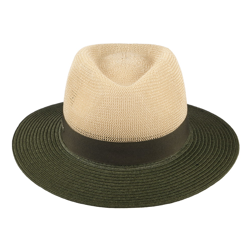 Chapeau Fedora en Paille Toyo Bicolore naturel-olive SEEBERGER