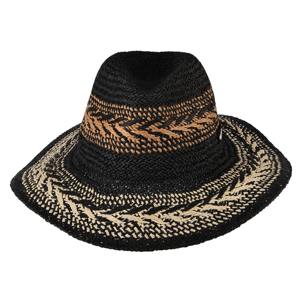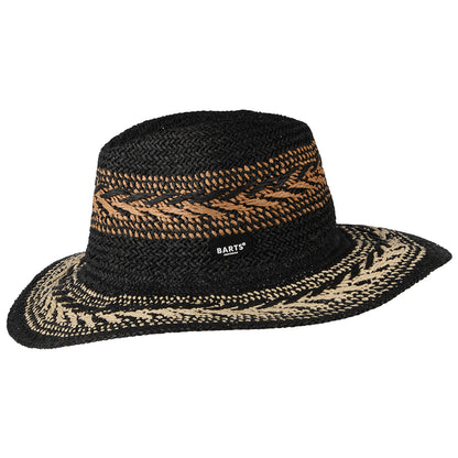 Voici le chapeau Fedora Été Caledona en noir de chez BARTS. Ce chapeau très léger est idéal pour l'été avec son bord large d'environ 9cm. Le chapeau est orné d'un insigne Barts en cuir cousu sur le côté. Ce chapeau non doublé possède un bandeau intérieur en tissu éponge avec strap scratch pour s'ajuster à plusieurs tailles.