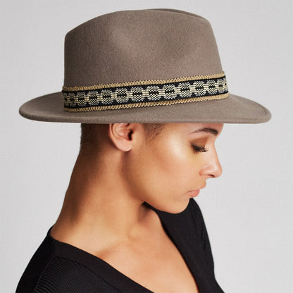 Voici le Chapeau Fedora Fiona II naturel de chez BRIXTON. Entièrement conçu en laine feutrée, ce chapeau est orné d'un bandeau extérieur tissé. Le bord de ce chapeau est large d'environ 6cm tandis que sa calotte goutte d'eau est haute d'environ 11,5cm.
