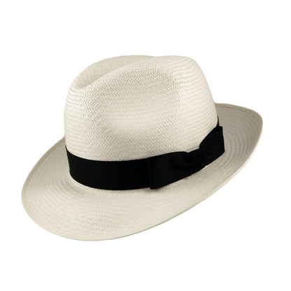 Le Chapeau Fedora Panama Excellent naturel avec Bandeau noir OLNEY est tissé en Equateur et mis en forme en Angleterre.