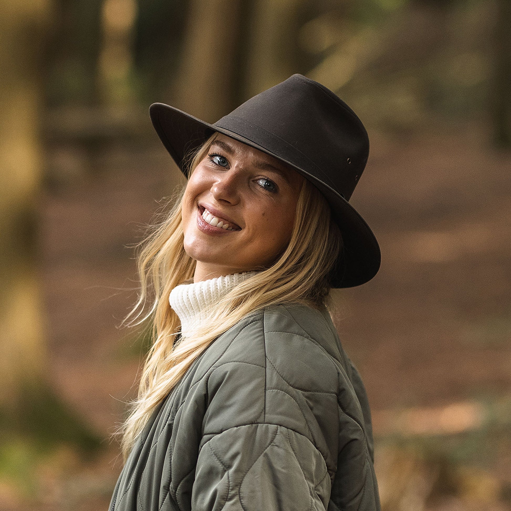 Voici le chapeau Fedora Safari en toile cirée de couleur olive de chez Jaxon & James. Ce chapeau est idéal pour voyager ou faire des randonnées en forêt. Fait à 100% en coton ciré, il est hydrofuge et solide, ce chapeau est l'accessoire qu'il vous faut pour aller en exploration.