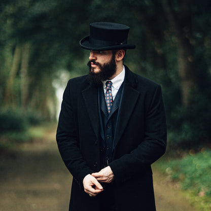 Le chapeau haut de forme Deadman noir de chez Jaxon & James est une autre interprétation du classique et intemporel bien-nommé que vous avez peut être vu porté par Johnny Depp dans le film du même nom, "Dead Man". Ce chapeau haut de forme se démarque des autres par sa courte calotte légèrement évasée. Le chapeau est orné d'un bandeau extérieur en gros-grain qui se termine par un nœud et une plume amovible sur le côté, et est fini d'une bordure en gros-grain sur l'extrémité du bord. Enfin, le bandeau intérieur en simili-cuir de ce chapeau est agréable au contact de la peau.