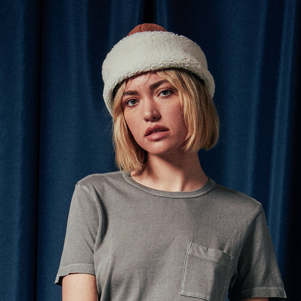 Voici le chapeau Hiver Ginsburg de chez BRIXTON en toffee et blanc cassé. Ce chapeau est doublé en satin matelassé et présente un revers en fausse fourrure sherpa. Enfin, le chapeau possède un bandeau intérieur en coton pour plus de confort. Ce chapeau est très agréable au toucher et vous maintiendra au chaud tout l'hiver !