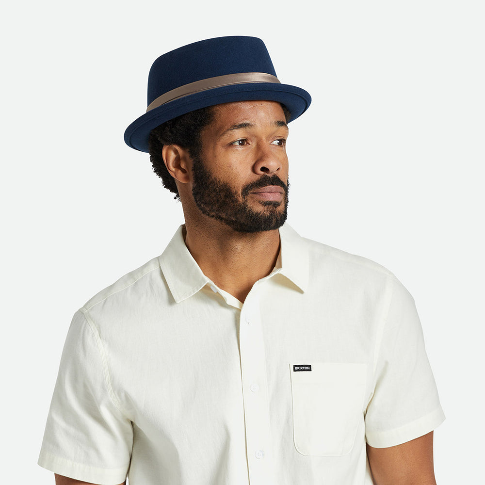 Chapeau Pork Pie en Laine Feutrée Stout bleu marine délavé BRIXTON