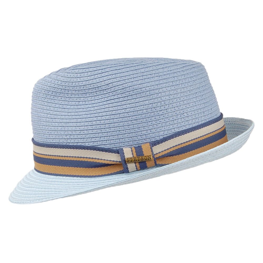 Voici le chapeau Trilby Adams bleu clair de chez STETSON. Ce chapeau, fait entièrement en viscose, comporte un bandeau intérieur en coton pour plus de confort et un bandeau extérieur multicolore. L'insigne STETSON trône sur le côté. Le bord est large d'environ 4,5cm. Chapeau estival, aussi féminin que masculin, parfait pour un apéritif en terrasse ou un pique-nique au parc.