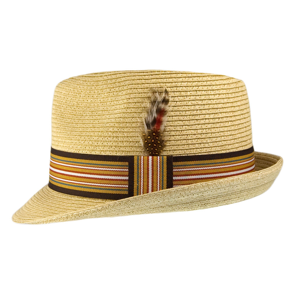 Voici le chapeau Trilby C-Crown Ridley de chez JAXON & JAMES couleur naturel. Conçu à partir d'une paille toyo souple, ce chapeau est confortable, léger et est orné d'un bandeau extérieur à rayures ainsi qu'une plume amovible sur le côté. Ce chapeau est l'option parfaite pour avoir l'air cool lors des chaudes journées d'été !