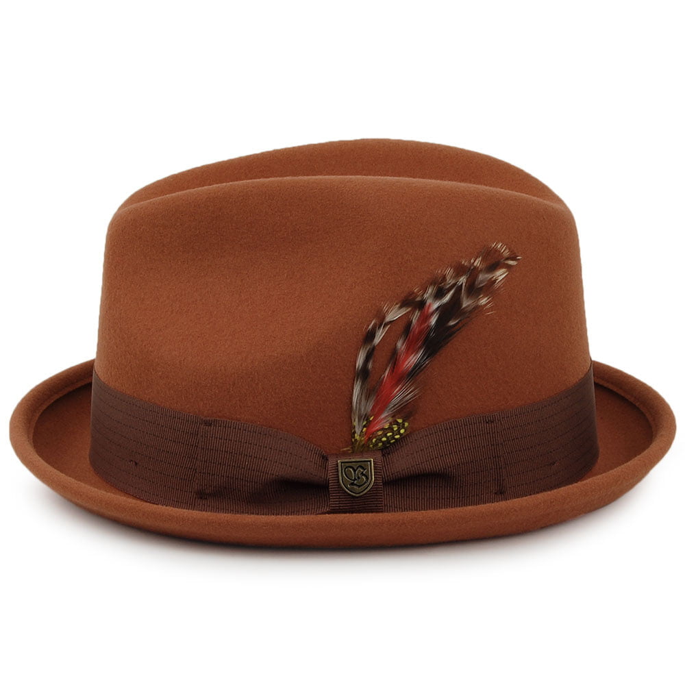 Le chapeau trilby Gain rouille de chez Brixton est un trilby à bord incurvé intégralement confectionné en laine feutrée. Un bandeau extérieur en gros-grain orné d'un insigne Brixton et d'une plume sur le côté ceint la calotte de ce chapeau. Entièrement doublé en satin, ce chapeau possède un bandeau intérieur en coton sergé qui le rend très confortable à porter.