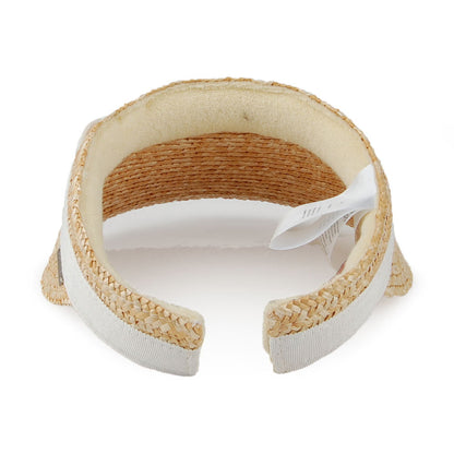 La visière été Dunewood en naturel-blanc de chez BETMAR est à avoir dans sa garde-robe en préparation au beau soleil de l'été. Cette visière des plus mignonnes est composée d'un bandeau intérieur en tissu éponge pour le confort et d'un bandeau extérieur en gros-grain fini d'un noeud sur le côté gauche. Le bord de la visière est long de 10cm pour une protection solaire optimale. Une visière idéale pour voyager et bronzer sous le soleil.