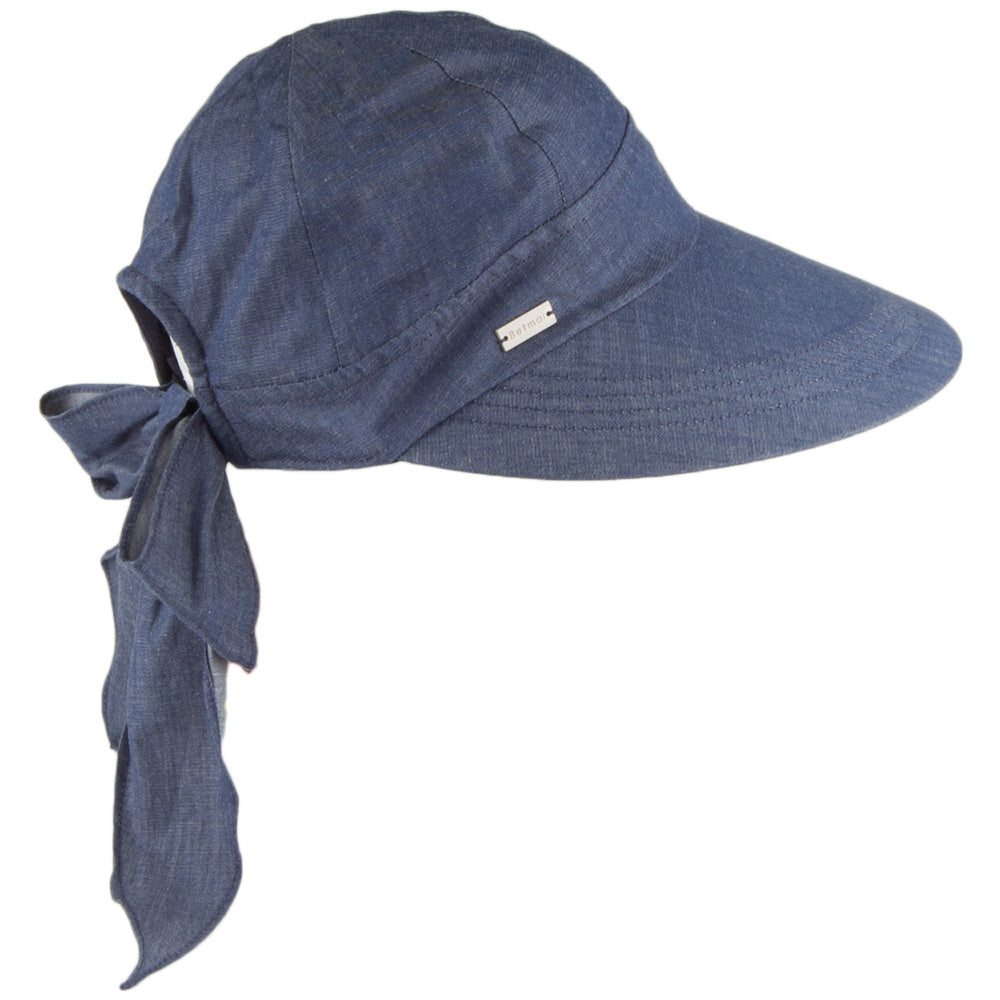 La visière Face Framer de chez Betmar en coton jean est absolument fantastique ! Entièrement conçue en coton, la protection solaire de cette visière est optimale grâce à un indice IP 50+. La visière à proprement parler atteint les 11cm de long quand la calotte ronde en six pans est haute d'environ 11,5cm. Côté finitions, la visière présente un noeud à l'arrière et est ornée d'un insigne Betmar sur le côté.